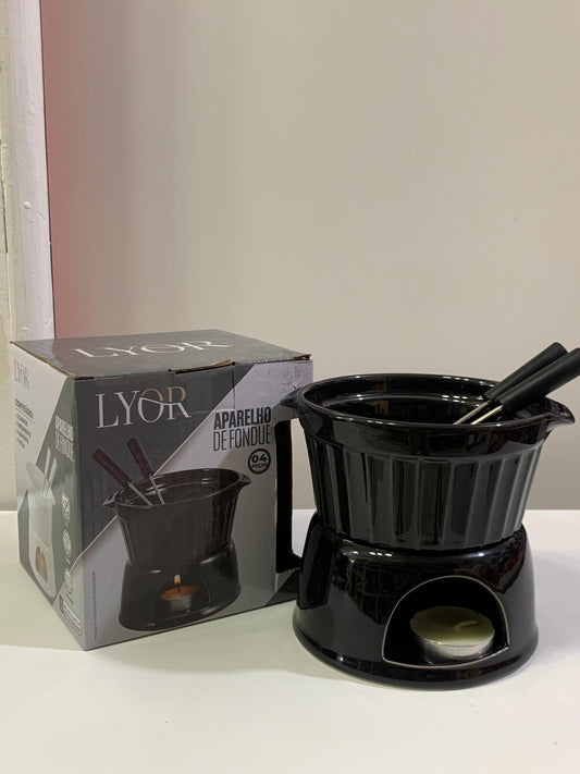 Lyor aparelho fondue 4 peças porcelana classic preto 400ml