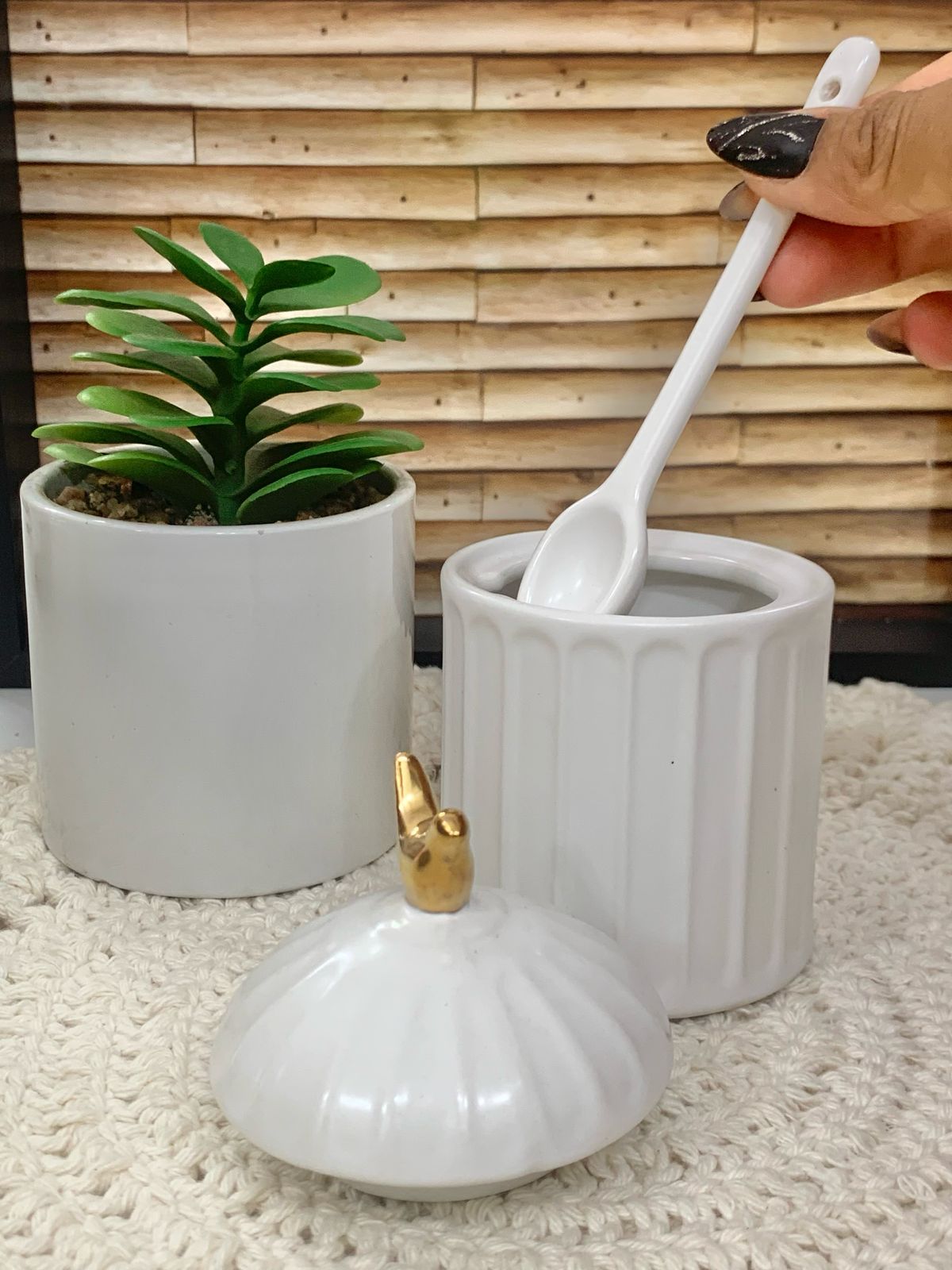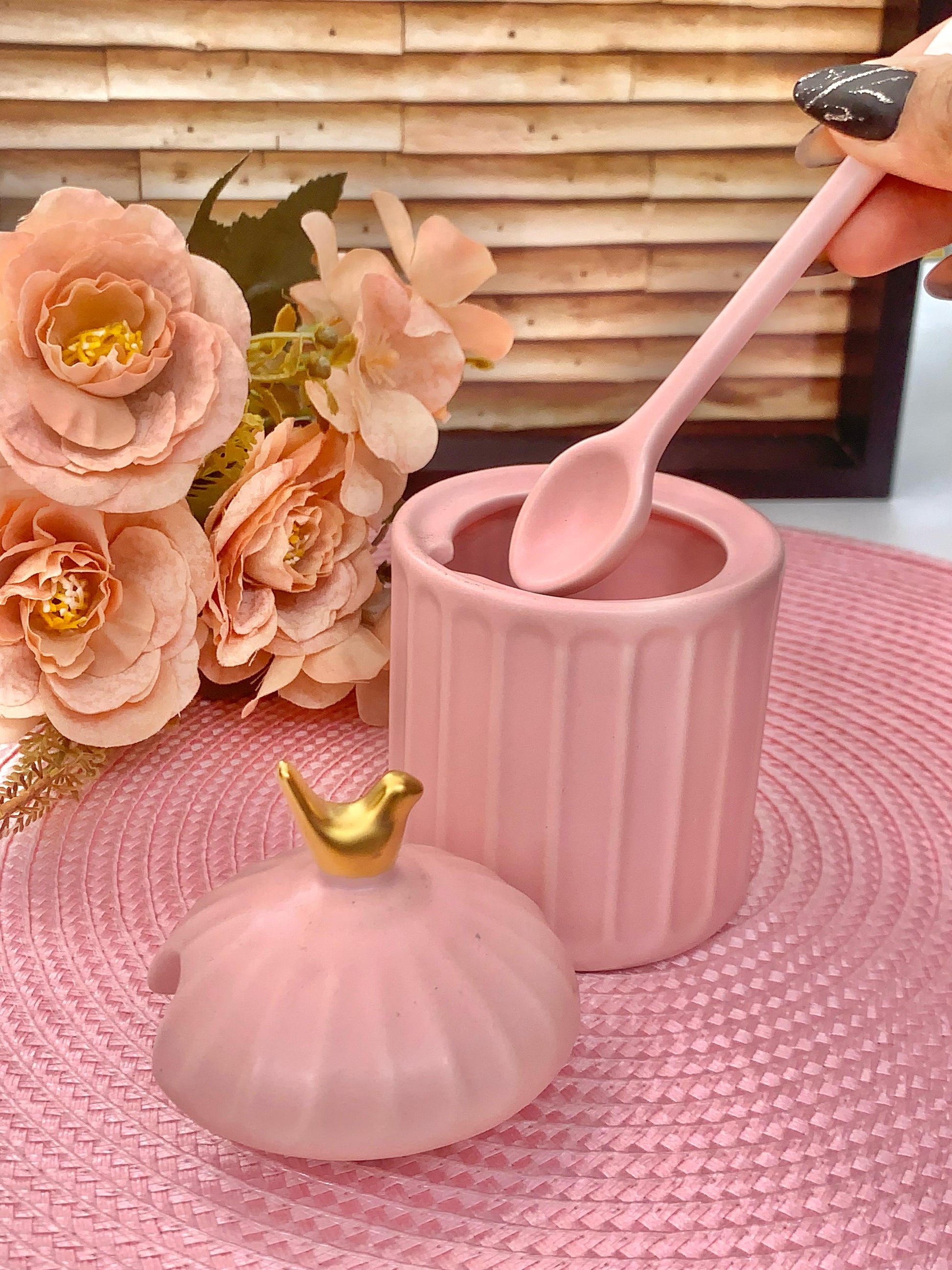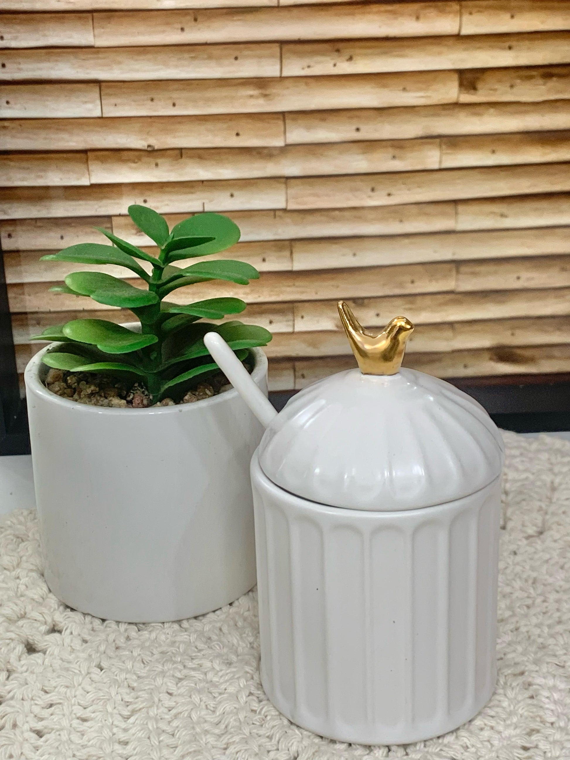 Açucareiro Birds C/ Tampa E Colher Cerâmica Wolff