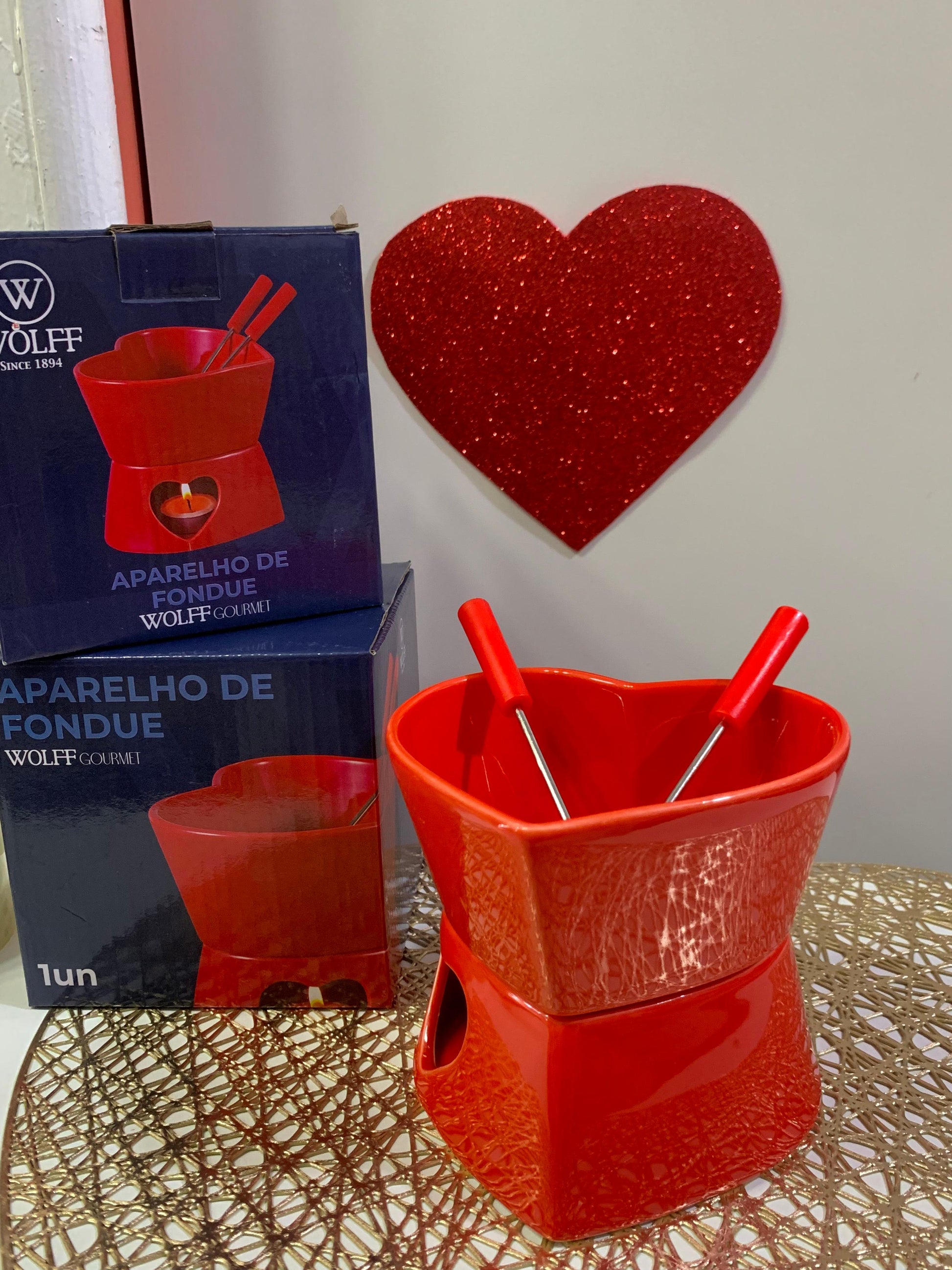 Apresentamos o Aparelho de Fondue 4 Peças Coração, um conjunto perfeito para criar momentos especiais a dois. Com seu design encantador em formato de coração e elegante cor vermelha, este aparelho de fondue traz romance e sofisticação à sua mesa.