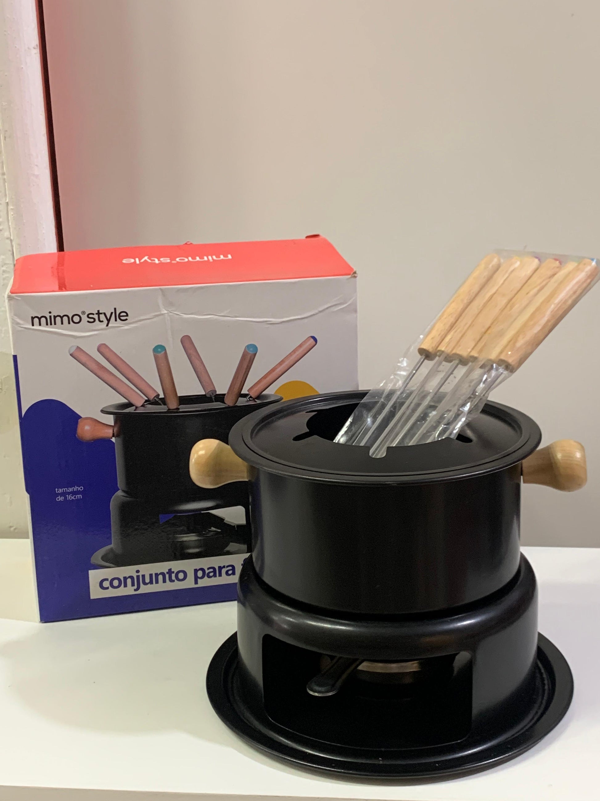 O Aparelho de Fondue é a escolha perfeita para momentos especiais em família ou com amigos. Compacto, elegante e eficiente, ele é ideal para preparar fondues de queijo, chocolate, carne e muito mais. Produzido com materiais de alta qualidade, o conjunto proporciona uma experiência gastronômica única, transformando suas refeições em ocasiões inesquecíveis. Com capacidade de 1.2 L e diâmetro de 20cm, a panela de Aluminio garante um aquecimento uniforme e saboroso. O conjunto inclui 6 garfos, uma base e um fogareiro, tornando-o completo e prático. É fácil de manusear e armazenar. O modelo da marca mimo stylle novo e ideal para quem busca qualidade e sofisticação em suas refeições. Aproveite momentos de descontração e sabor com este incrível aparelho de fondue!