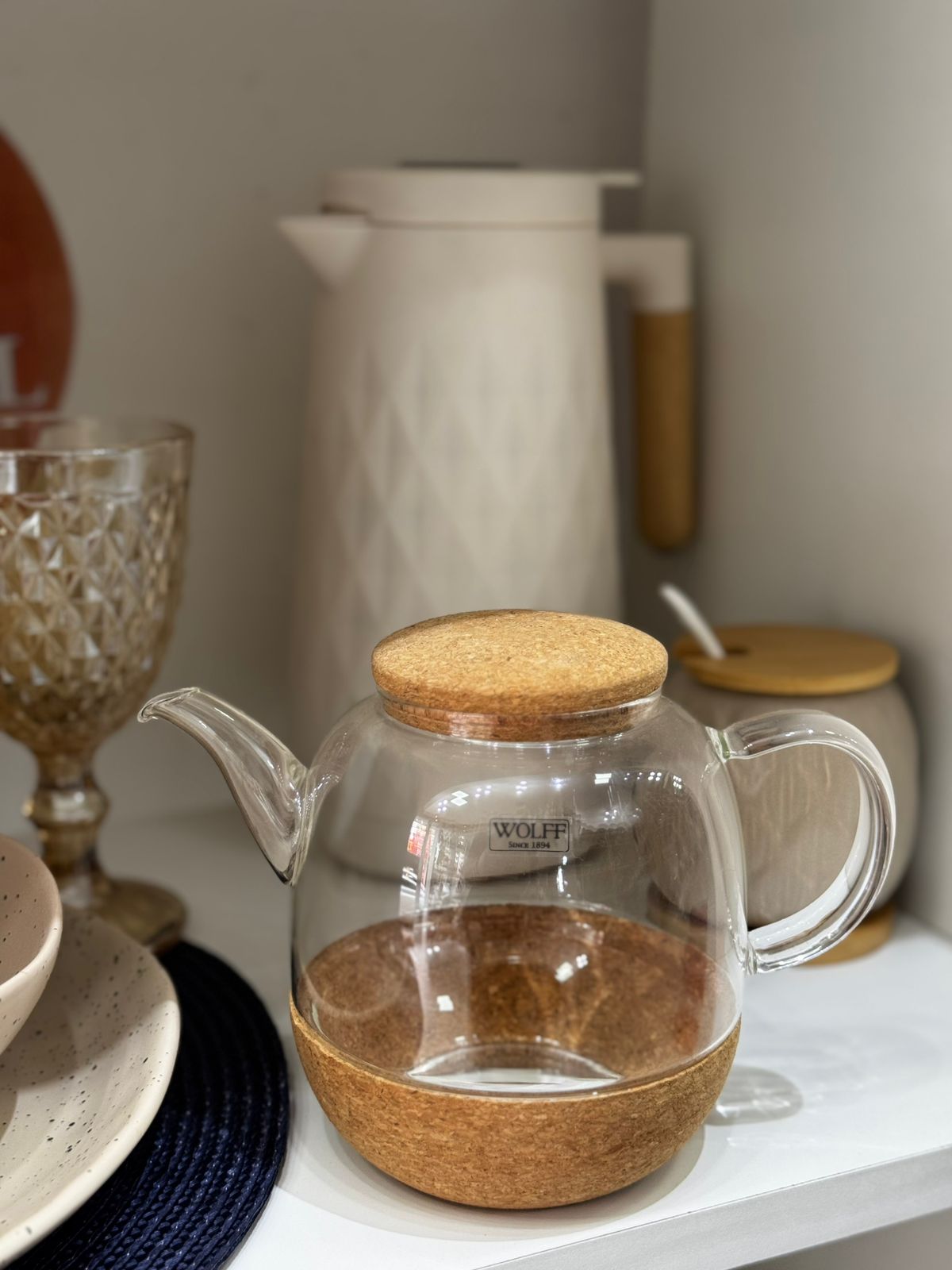 Feita de vidro de alta qualidade, a chaleira permite visualizar o processo de infusão, garantindo a intensidade perfeita do seu chá. A base antiderrapante oferece estabilidade e segurança durante o uso, enquanto a tampa em rolha adiciona um toque natural e sofisticado ao design.