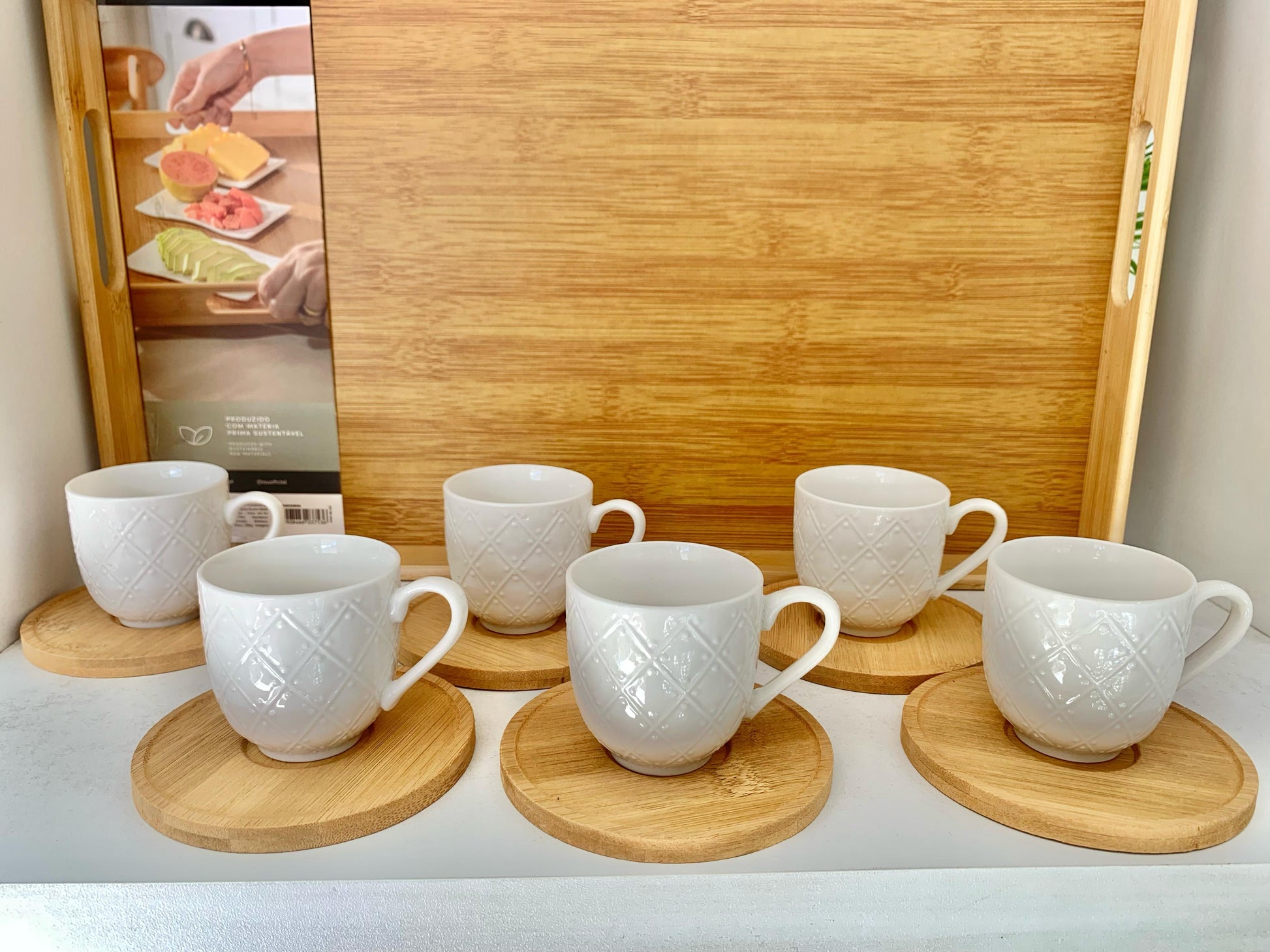 Conjunto com 6 Xícaras de Porcelana e 6 Pires em Bambu Havana.