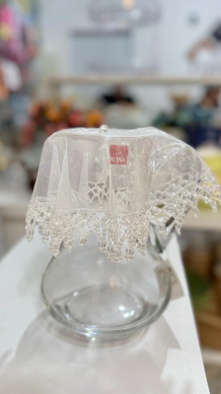 - PROTEÇÃO ELEGANTE: Cobre jarra artesanal feito em tule delicado com pedrarias aplicadas à mão, protege suas bebidas contra mosquitos e partículas indesejadas com sofisticação