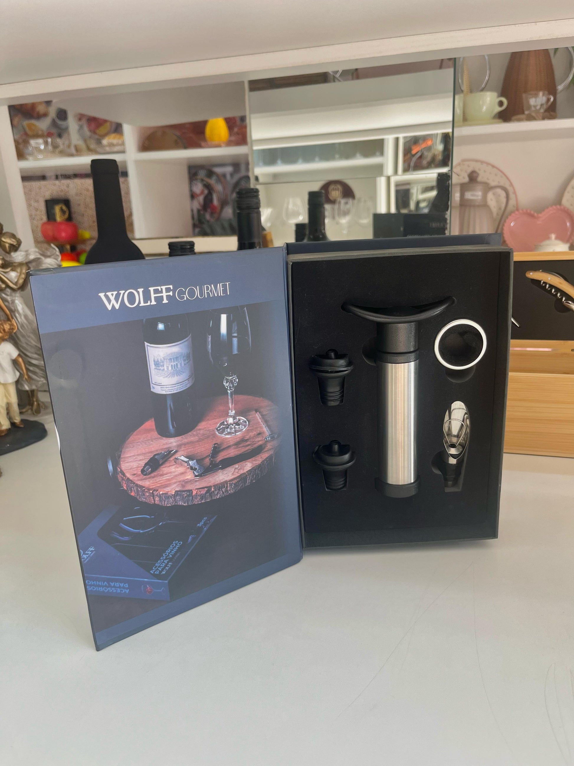 Além de sua funcionalidade excepcional, o Conjunto Acessórios para Vinho da Wolff é uma demonstração de sofisticação e estilo. Cada peça apresenta um design elegante que combina com qualquer ambiente, tornando-o um presente perfeito para entusiastas de vinho ou uma adição refinada à sua coleção pessoal. Seja você um apreciador de vinhos ou alguém que aprecia uma boa taça, este conjunto de acessórios é essencial para criar uma experiência de atualização deliciosa. Ele é o companheiro perfeito para quem valoriza a arte de saborear um bom vinho. Garanta logo o seu Conjunto Acessórios para Vinho 5 Peças Wolff!