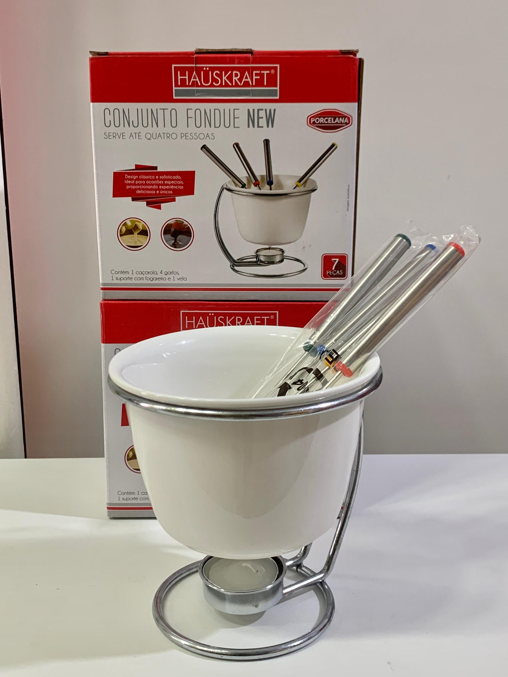 Conjunto Para Fondue Novo Em Porcelana Branca Hauskraft