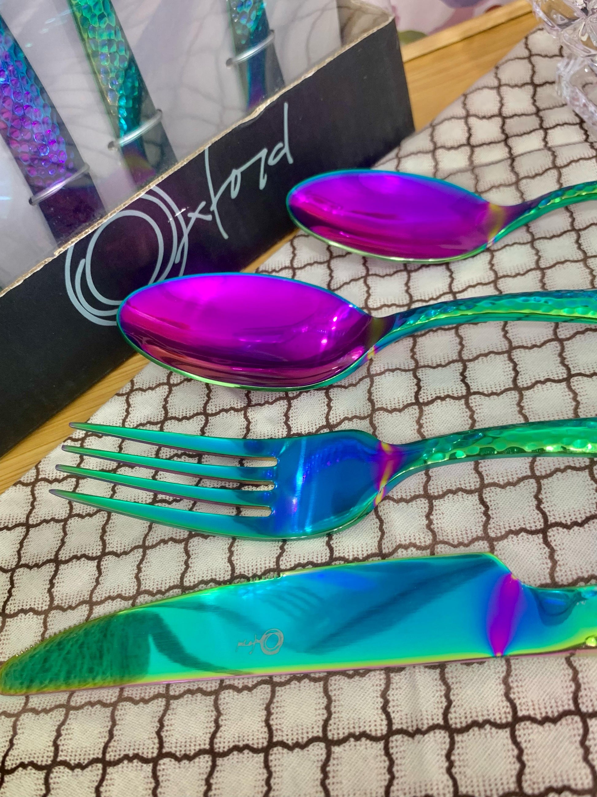 O Faqueiro 16 Peças Oxford Syreni apresenta uma variedade de cores, texturas e formatos para adicionar criatividade ao cotidiano. Os talheres decorados da Oxford combinam a durabilidade do aço de alta qualidade com um design que visa impressionar. A coleção Syreni em furta-cor é contemporânea e audaciosa. O cabo das peças possui uma textura diferenciada. O conjunto inclui embalagem especial com 4 facas de mesa, 4 garfos de mesa, 4 colheres de mesa e 4 colheres menores. As peças requerem cuidados específicos de limpeza com sabão neutro e esponja macia, enxágue com água em abundância e secagem adequada antes de armazenar. Não são adequadas para máquina de lavar louças e não devem ser utilizadas em micro-ondas.