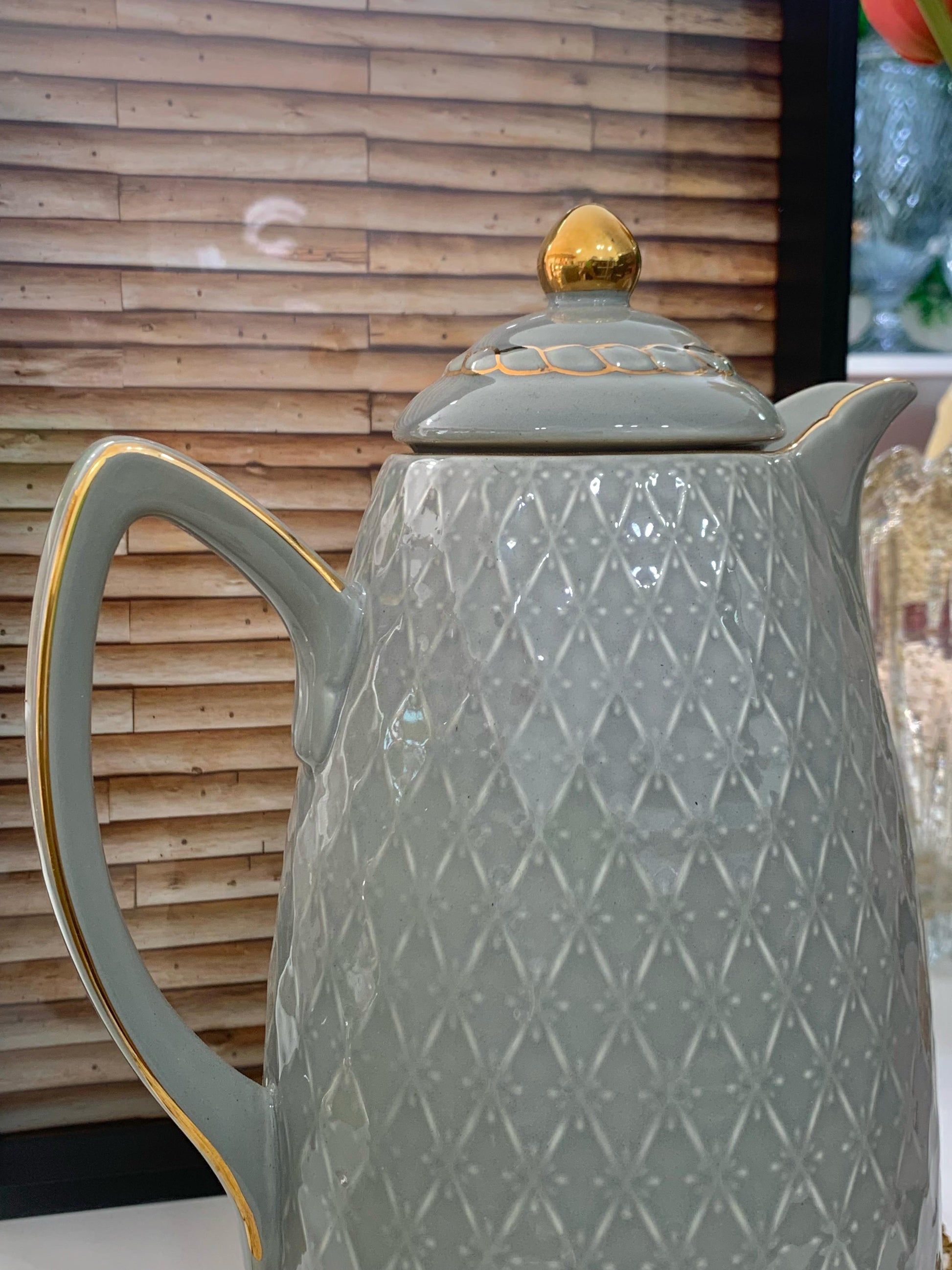 Garrafa Térmica 900ml Para Café De Porcelana Renda CINZA Wolff