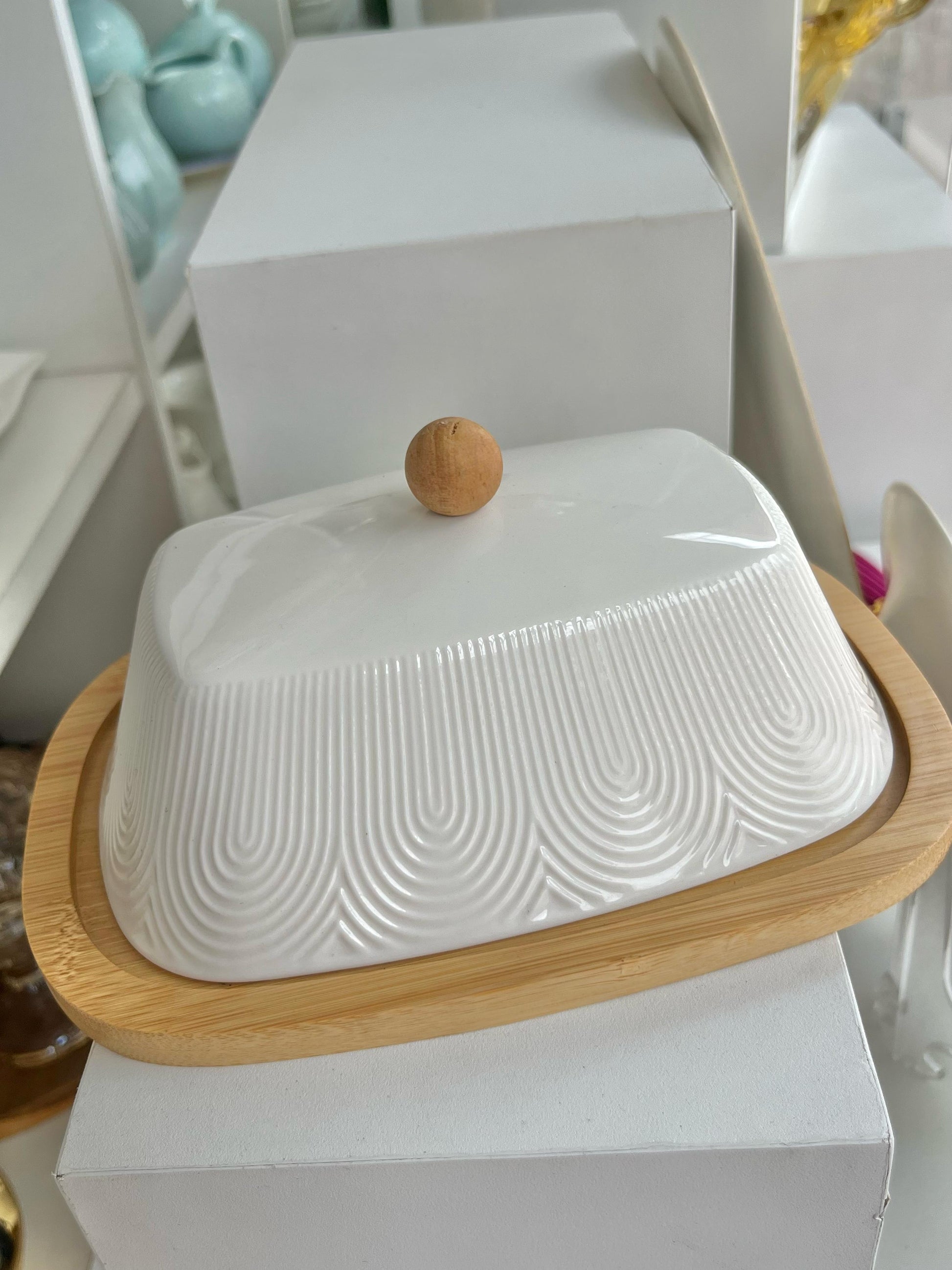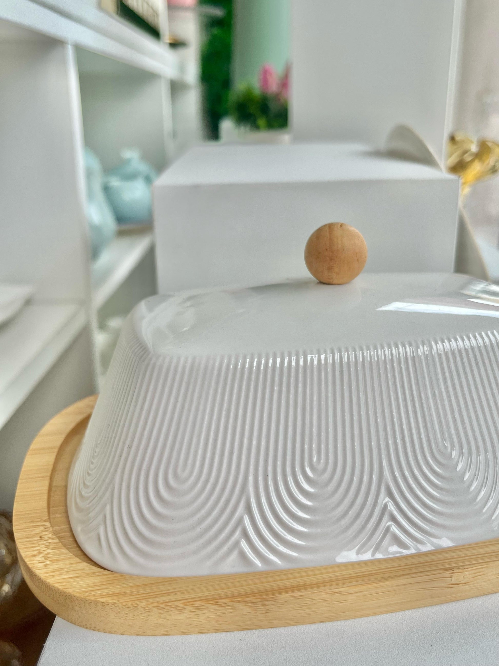 Manteigueira Oasis 21cm Porcelana e Bambu -HAUSKRAFT PREMIUM
