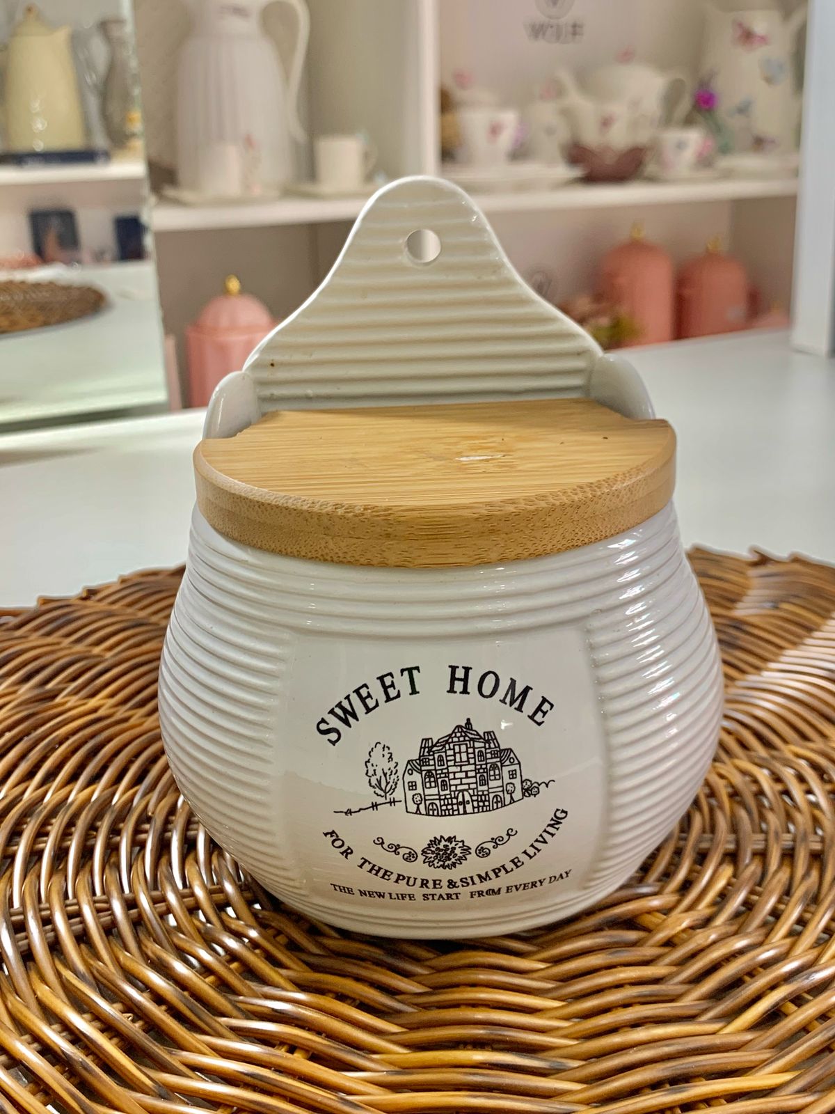 SALEIRO DE PAREDE CERÂMICA SWEET HOME TAMPA DE MADEIRA LYOR