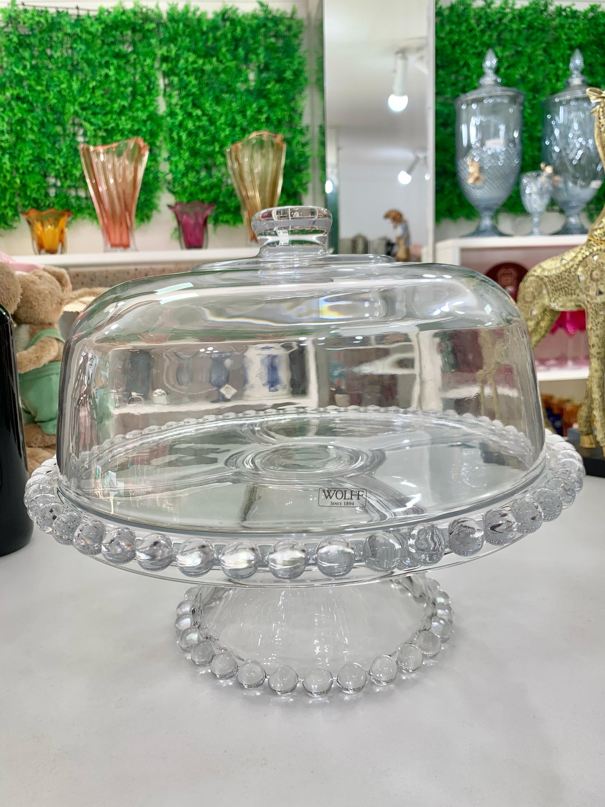 WOLFF - Prato para Bolo com Pé de Cristal e Tampa 31cm x 25cm - Linha Pearl
