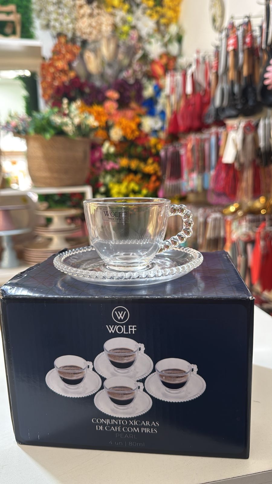 Cj 4 Xícaras Café Cristal c/ Pires Pearl 80ml - Wolff -
