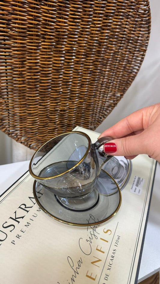 CONJUNTO 4 XICARA MAIS PIRES DE CRISTAL HAUSKRAFT 170ML FIO DOURADO LINHA PREMIUM